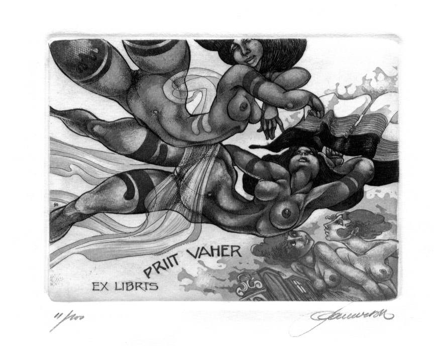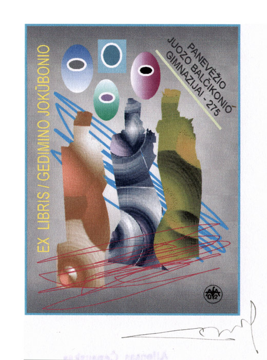 Как правило, в компьютерных экслибрисах имитируют разные виды графических техник, «навязывают» форме чуждые его природе художественные задачи. Мы видим и псевдо офорт, с его тоновыми богатствами, и псевдо высокую печать с цветовыми растяжками, и великолепный шрифт из библиотечных программ. Но во всём этом нет эмоциональных переживаний и нарушений. Всё правильно и стерильно. Отсутствие этих возможностей не позволяет развить личностные качества художника. Графический язык каждого художника должен быть индивидуальным, неповторимым и своеобразным. Стать неповторимым - это огромная задача даже с большим арсеналом средств, техники и других компонентов.