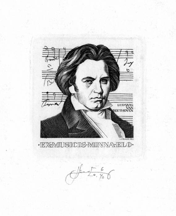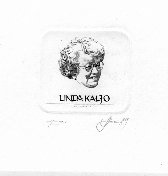 Уравновешенные, со спокойными переходами, экслибрисные портреты Л.Лыхмуса, отличаются от лиц в книжных знаках А.Калашникова, богатыми контрастными сочетаниям светлых и густых темных пятен.