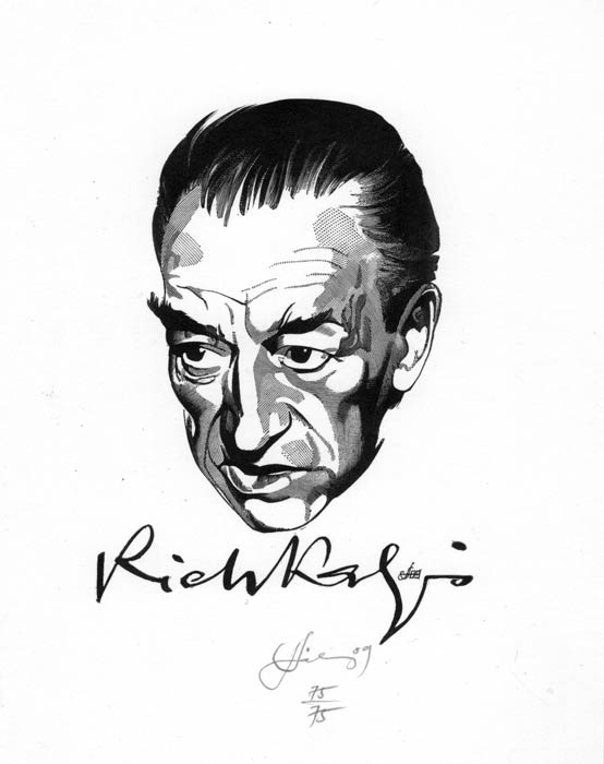 По иному принципу была сформирована миниатюра, выполненная для Рензо Манчини (1988г.) Это метафора сложных ассоциативных связей: здесь я, как художник, стремился «схватить» момент при известном аналитическом подходе и взгляде на время. Изображённый портрет Дануццио «колеблется» между внешней фиксацией лица и претензией на «психологию». Но, в целом, портрет как бы отходит на задний план (по крайней мере, на время) перед сюжетом всей композиции с ее сложными психологическими коллизиями. Пространство в этой малой форме рассматривается как формообразующая среда, тождественная напряжённой атмосфере того времени, а прочтение портретной композиции как бы знакомит с документом художественной культуры той эпохи.