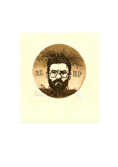 Все поиски и графические находки я пытался апробировать на малых формах - экслибрисах. Работы определялись выверенной и заданной образной концепцией. Знания и представления мои об искусстве книжного знака во всех ранних опусах выступают достаточно ясно. Не буду пытаться скрыть, что был увлечен творчеством старых мастеров миниатюры и, конечно, их «манерой» исполнения.