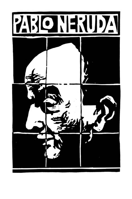 Цикл гравюр к книге Пабло Неруды «Всеобщая песнь» показывает нам то, что Исай Кырму - мастер постижения трагического. Несмотря на то, что автор поэзии является представителем литературы двадцатого века, художник из всего иллюстративного арсенала опять выбирает обрезную гравюру и одну черную краску. Этот цвет для него как бы предопределяет чувство скорби. Портрет выполнен в профиль и напоминает мемориальную доску с датами и текстом из произведения поэта.