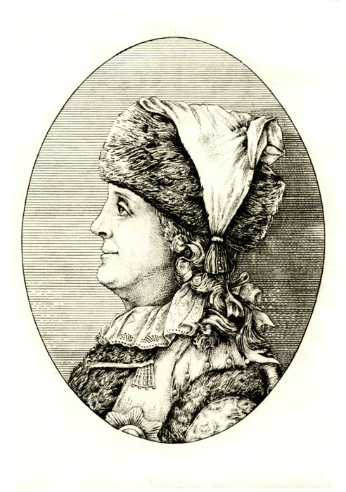 Как правило, императрицу изображали в анфас или в три четвери. Музей заказал исторический портрет Екатерины II в профиль и в технике исполнения «офорт». Необходимо было решить и композиционный канон, при котором лицо модели занимает главенствующее, центральное положение. Абрис портретируемой был далёк от элегического, а черты лица - от идеальных. Многочасовое изучение произведений художников, изображавших Екатерину, подтолкнули меня на творческие поиски, означавшие вступление в интеллектуальное состязание с интереснейшими творцами «Екатерининского» времени. Предстояло понять, раскрыть и оттенить грани великой личности. Портрет должен был обрести определённую трактовку как исторический персонаж. Загадочности образу придала лёгкая усмешка. Материальная культура отразила время, а прозрачная моделировка цветом (акварель по офорту) подчеркнула женственность облика.