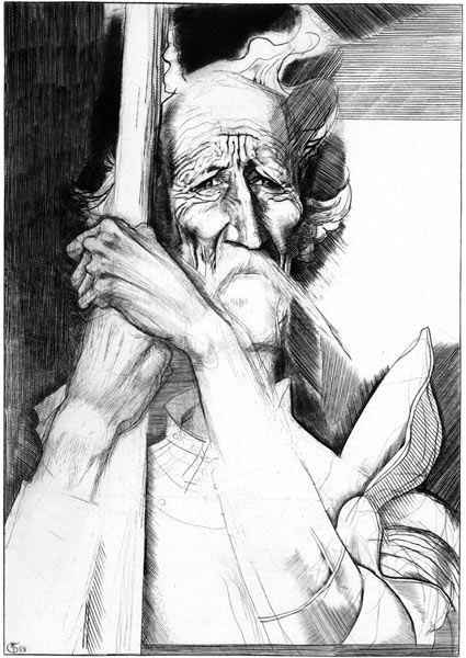 Макет был принят, шрифт оговорен, поступило предложение закрепить сделанное. Илья Трофимович достал большую бутылку, на которой красовалась каллиграфическая надпись «Spiritus vini» выполненная, конечно же, автором. Мы засиделись допоздна, испытывая громадное удовольствие от общения. Мастер показывал десятки медных досок, испорченных и повторенных вновь и вновь. Он гравировал до тех пор, пока не добивался определённого, нужного ему результата. Мэтр рассказывал, как требовательно ищет и отрабатывает ту или иную композицию, как, разрабатывая новую тему, изучает новые возможности, новые материалы и инструменты, необходимые для создания иллюстраций данного произведения. Я поражался подобному глубокому подходу к профессии и невероятной трудоспособности, поискам и находкам, несметному количеству увиденных рисунков и эскизов. Из них оставались только те, которые устраивали творца, остальные беспощадно сжигались в камине, обдавая жаром интеллекта и титанического труда. Это были незабываемые уроки графического ремесла, высокого «богдесковского ремесла».